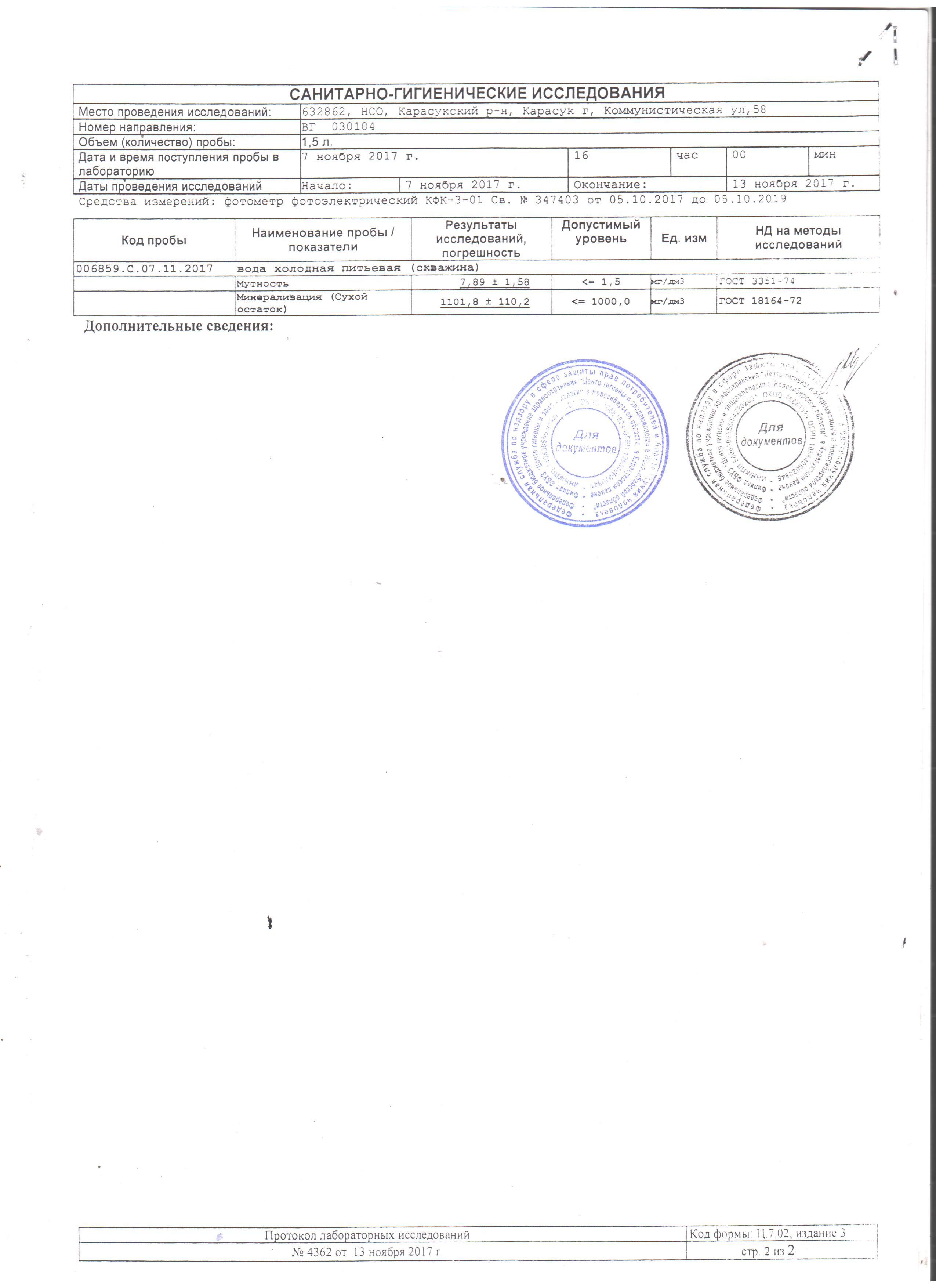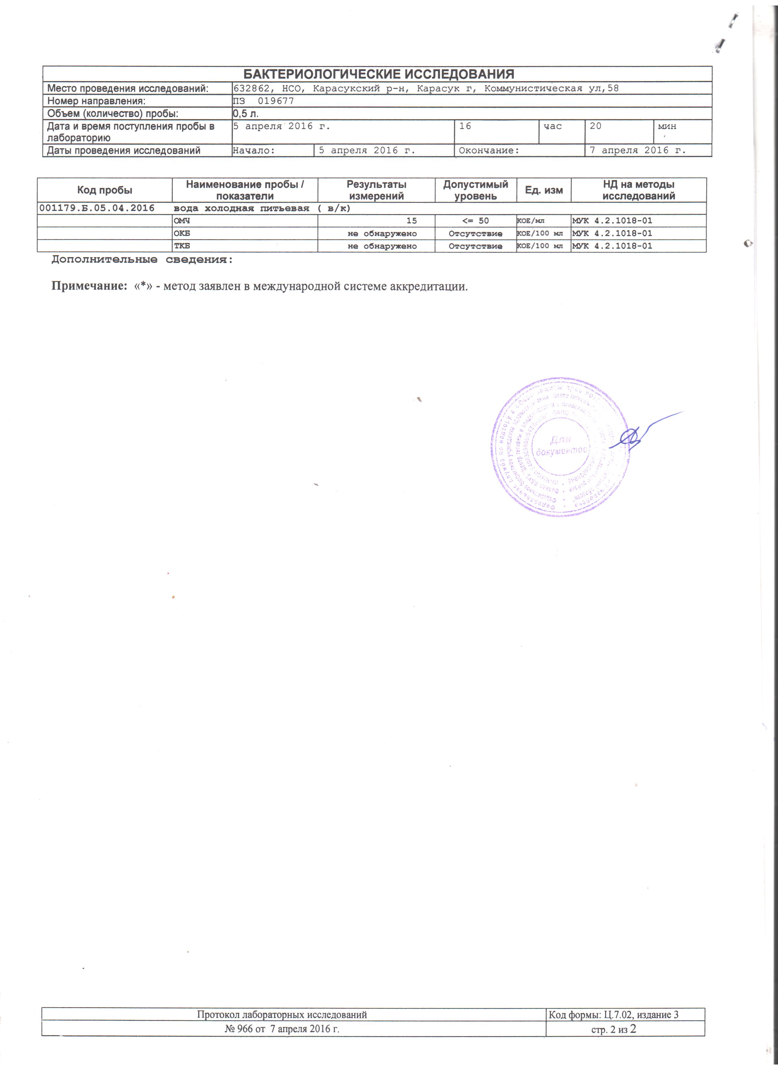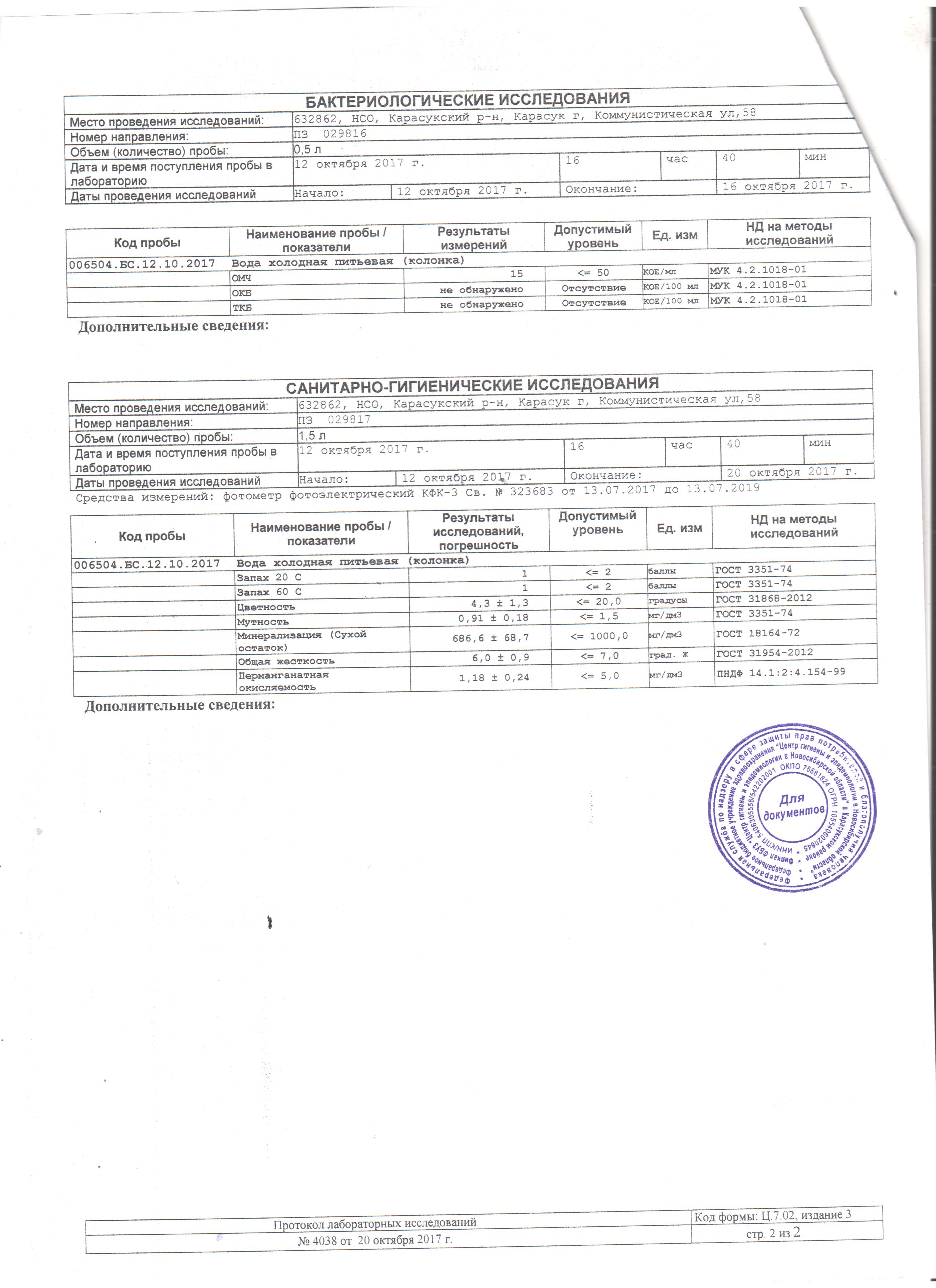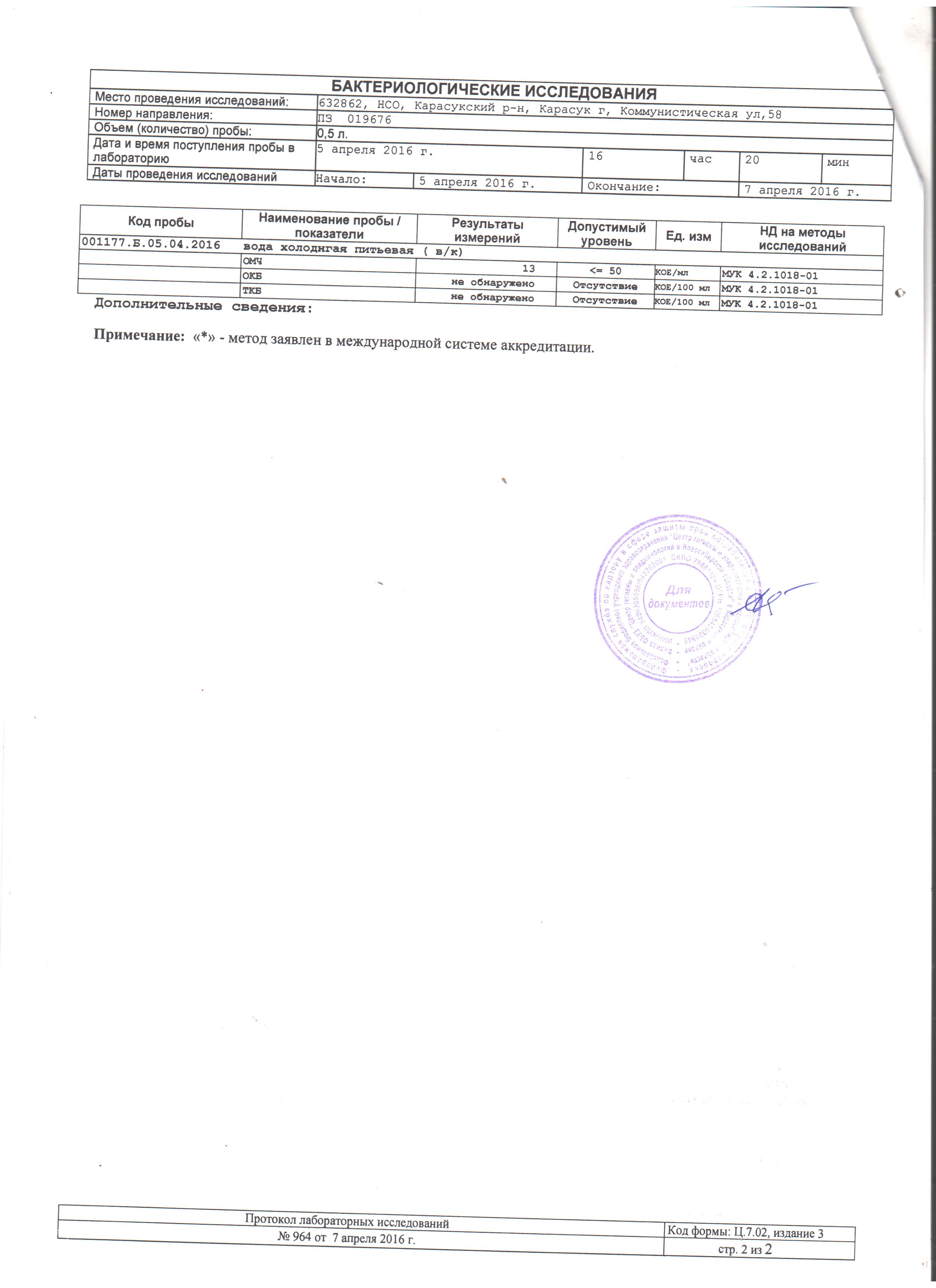 Управление Роспотребнадзора по Новосибирской области направила нам информацию о результатах проверок проведенных в ноябре 2018года в отношении организации осуществляющих водоснабжение на территории Колыбельского МО